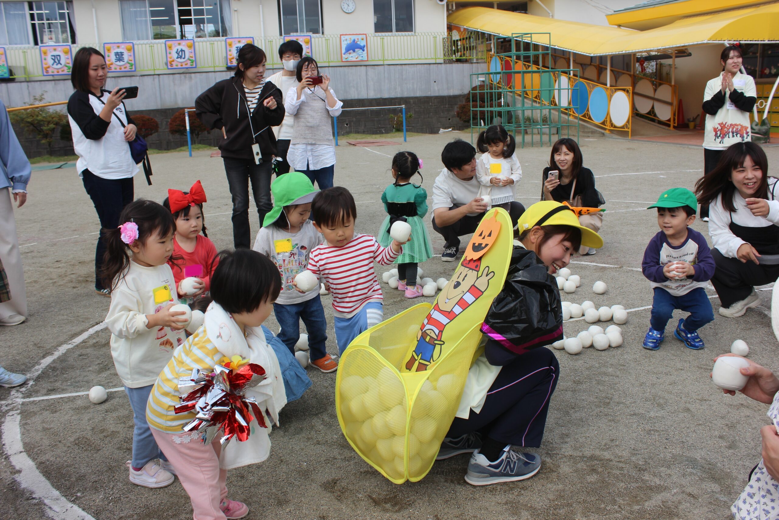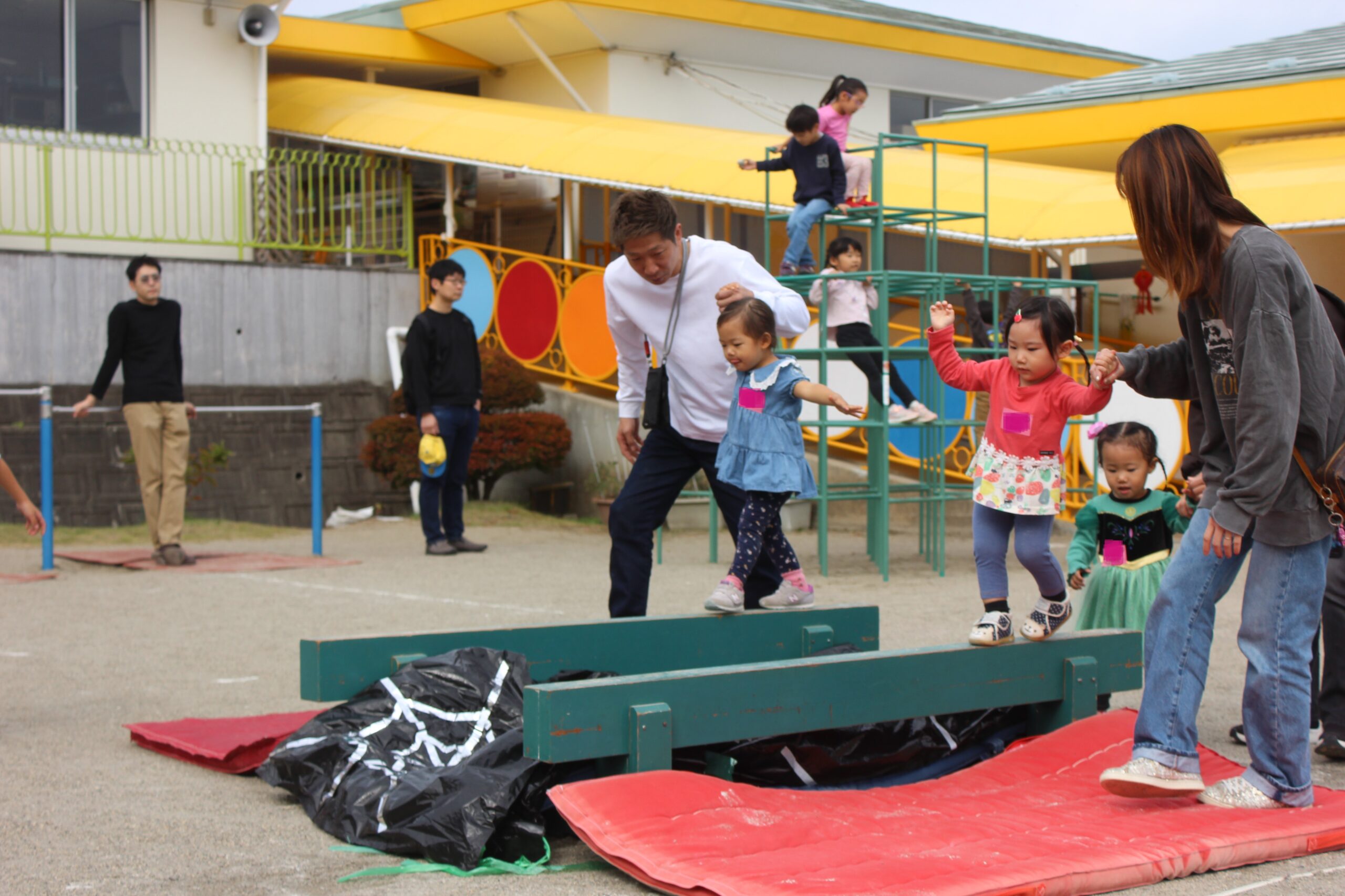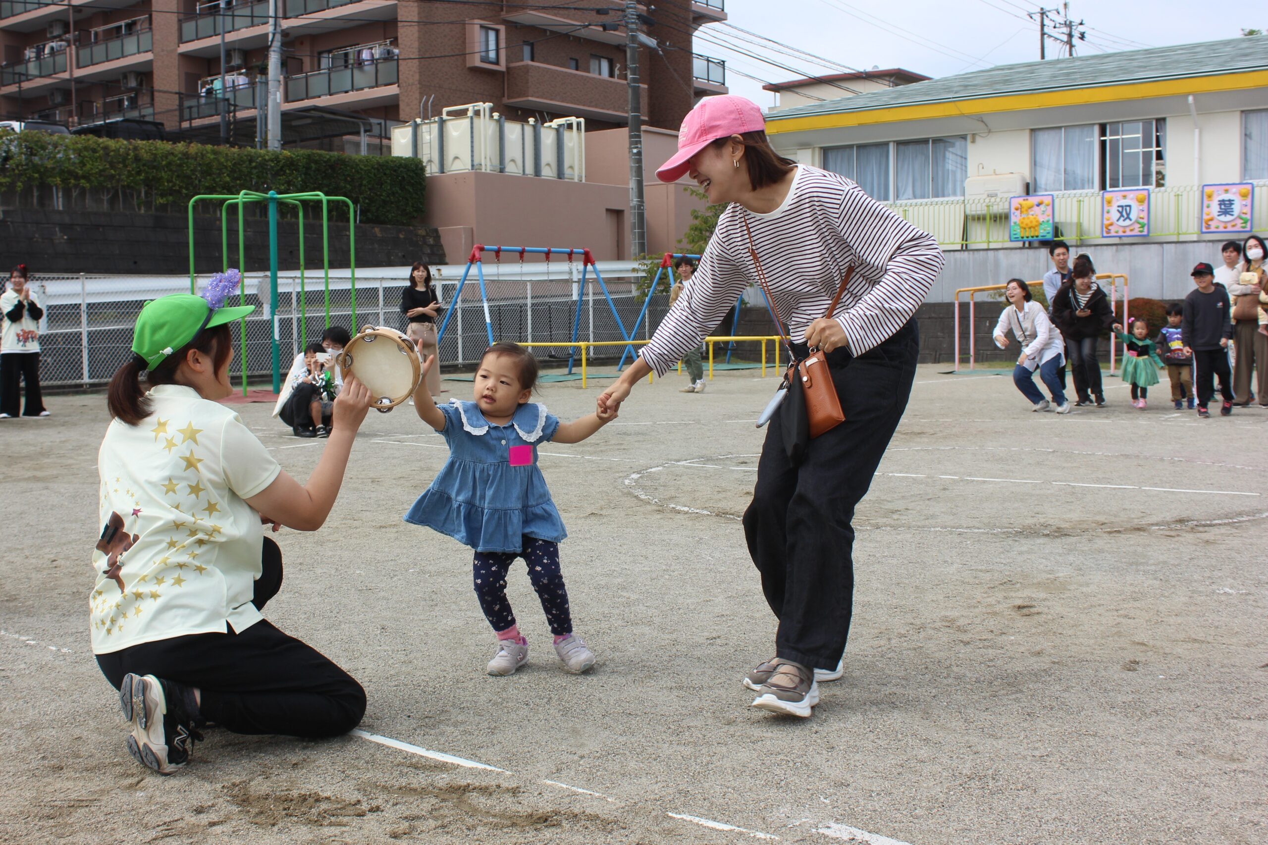 みんなかっこよく入場行進した後、いよいよ競技開始! かけっこや玉入れ、親子障害走、そして親子ダンス。パパやママと一緒に頑張りました。幼稚園や小学校のお兄さんお姉さんたちの徒競走もかっこよかったね。