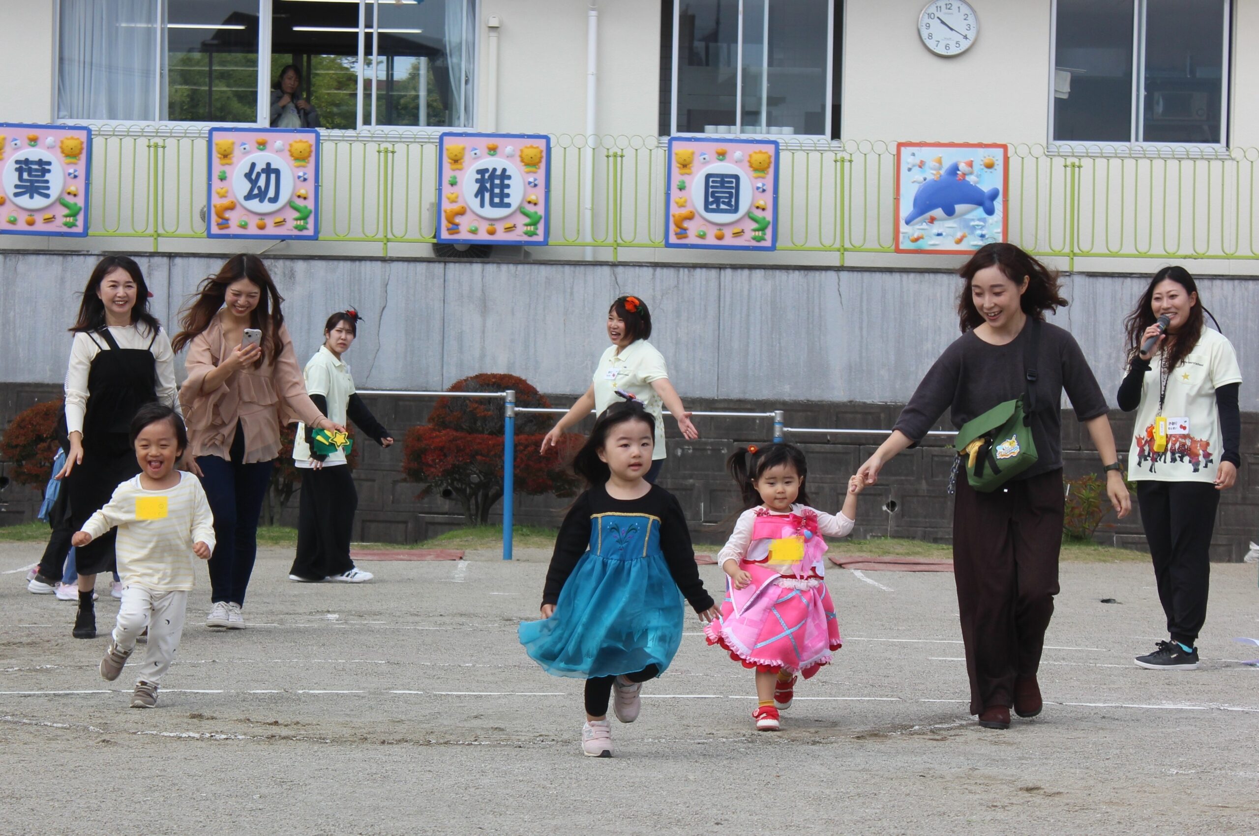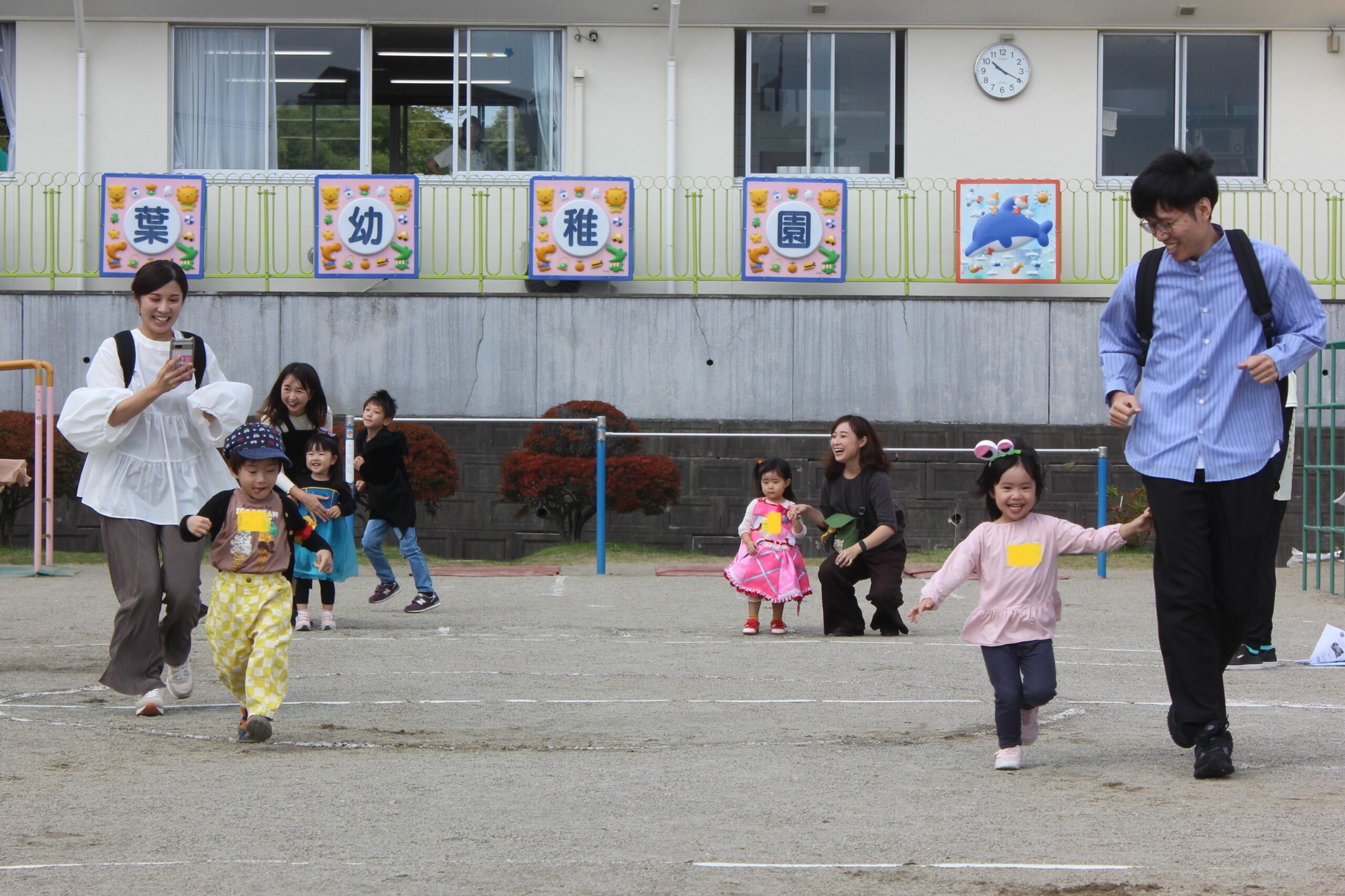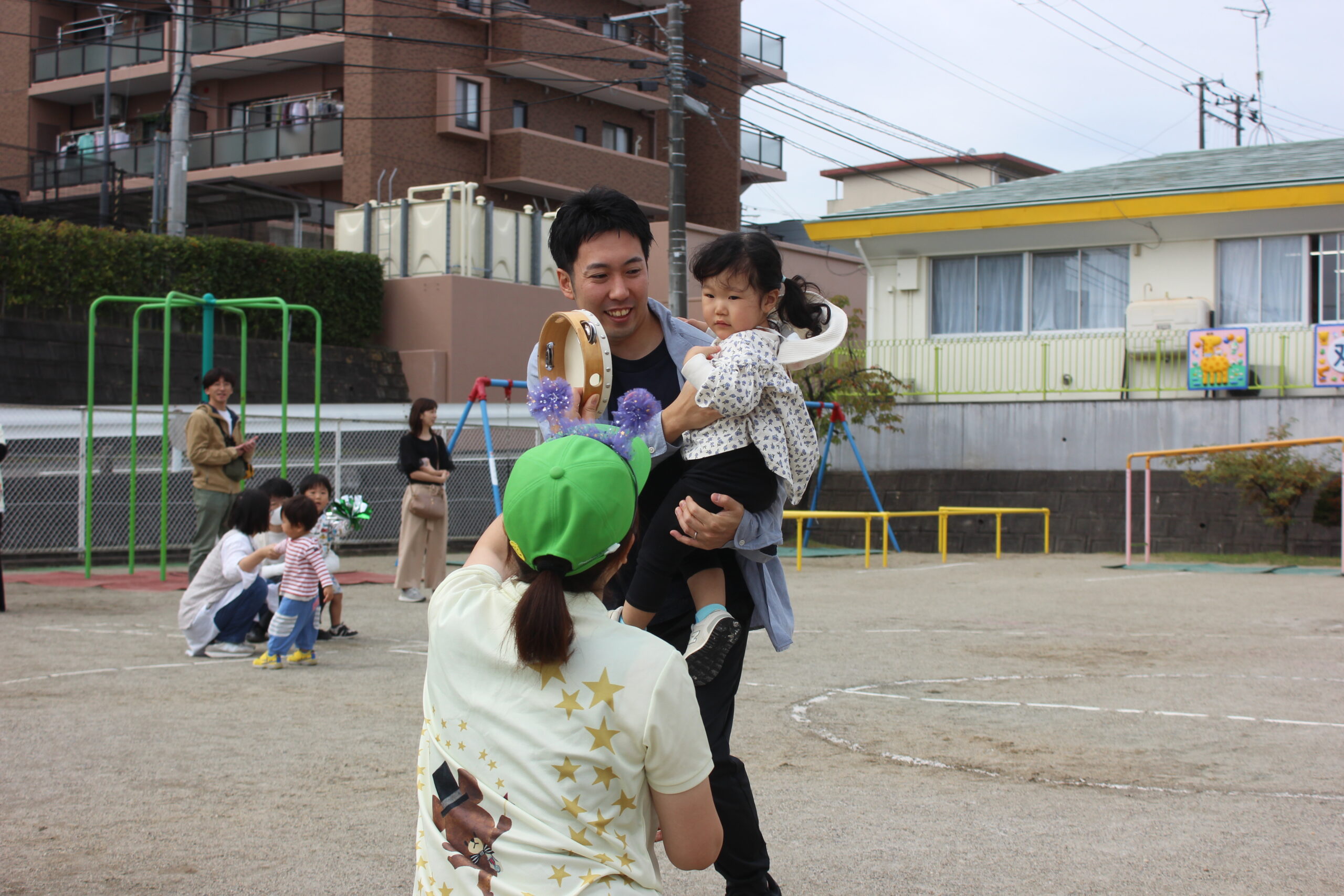 みんなかっこよく入場行進した後、いよいよ競技開始! かけっこや玉入れ、親子障害走、そして親子ダンス。パパやママと一緒に頑張りました。幼稚園や小学校のお兄さんお姉さんたちの徒競走もかっこよかったね。