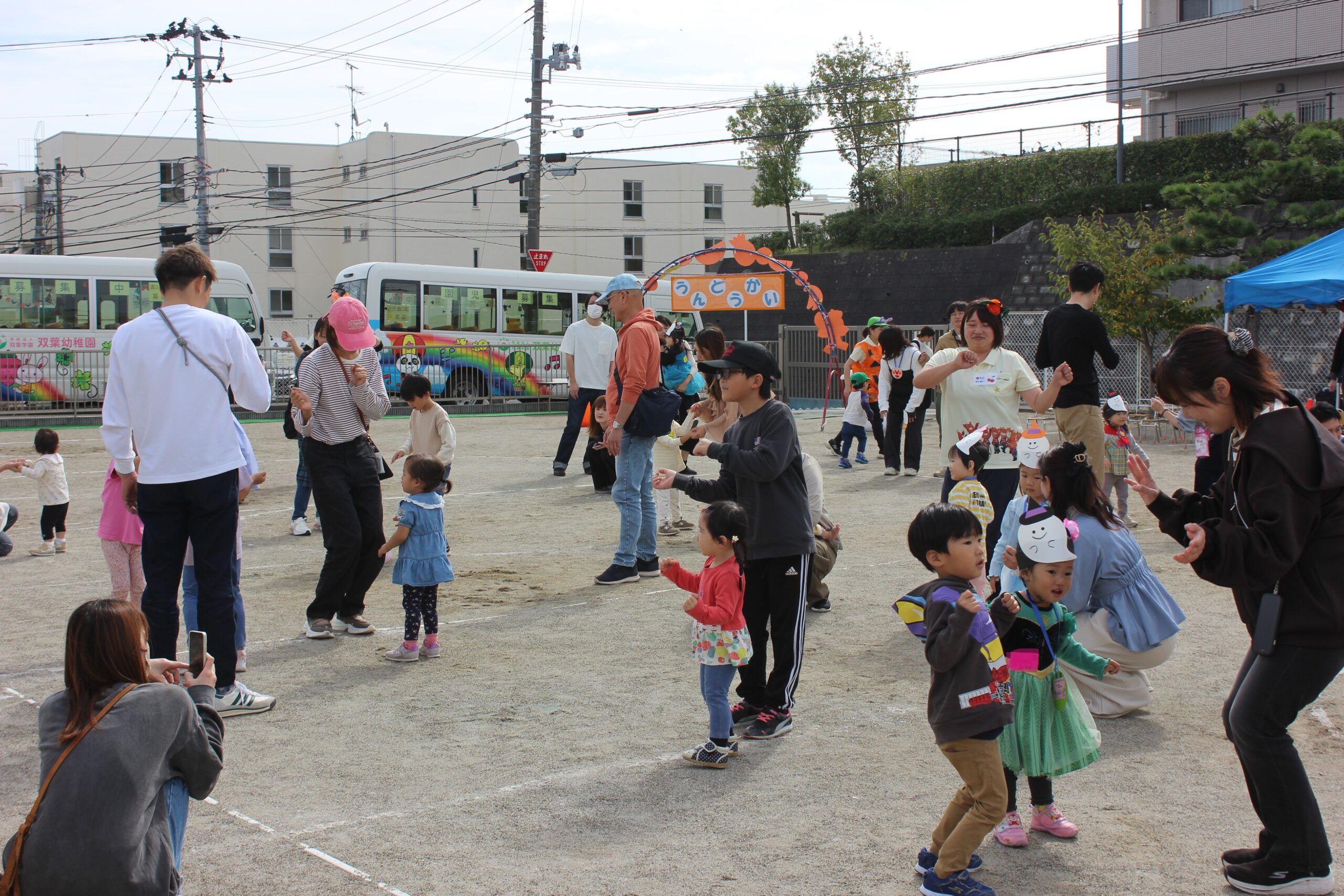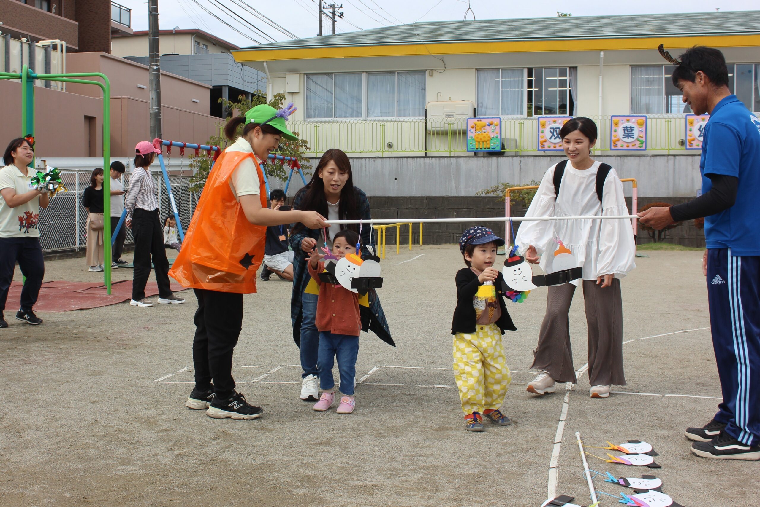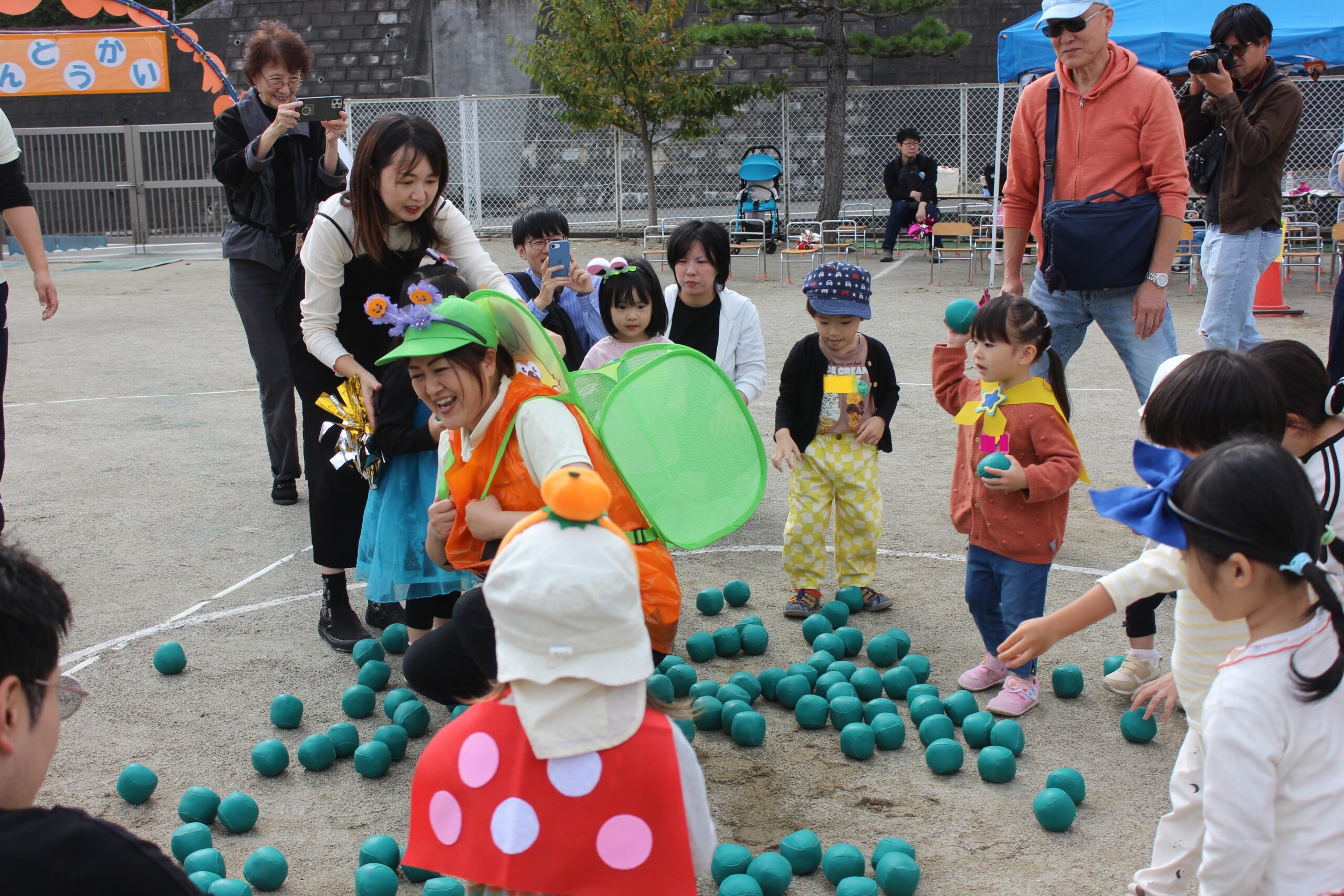 みんなかっこよく入場行進した後、いよいよ競技開始! かけっこや玉入れ、親子障害走、そして親子ダンス。パパやママと一緒に頑張りました。幼稚園や小学校のお兄さんお姉さんたちの徒競走もかっこよかったね。