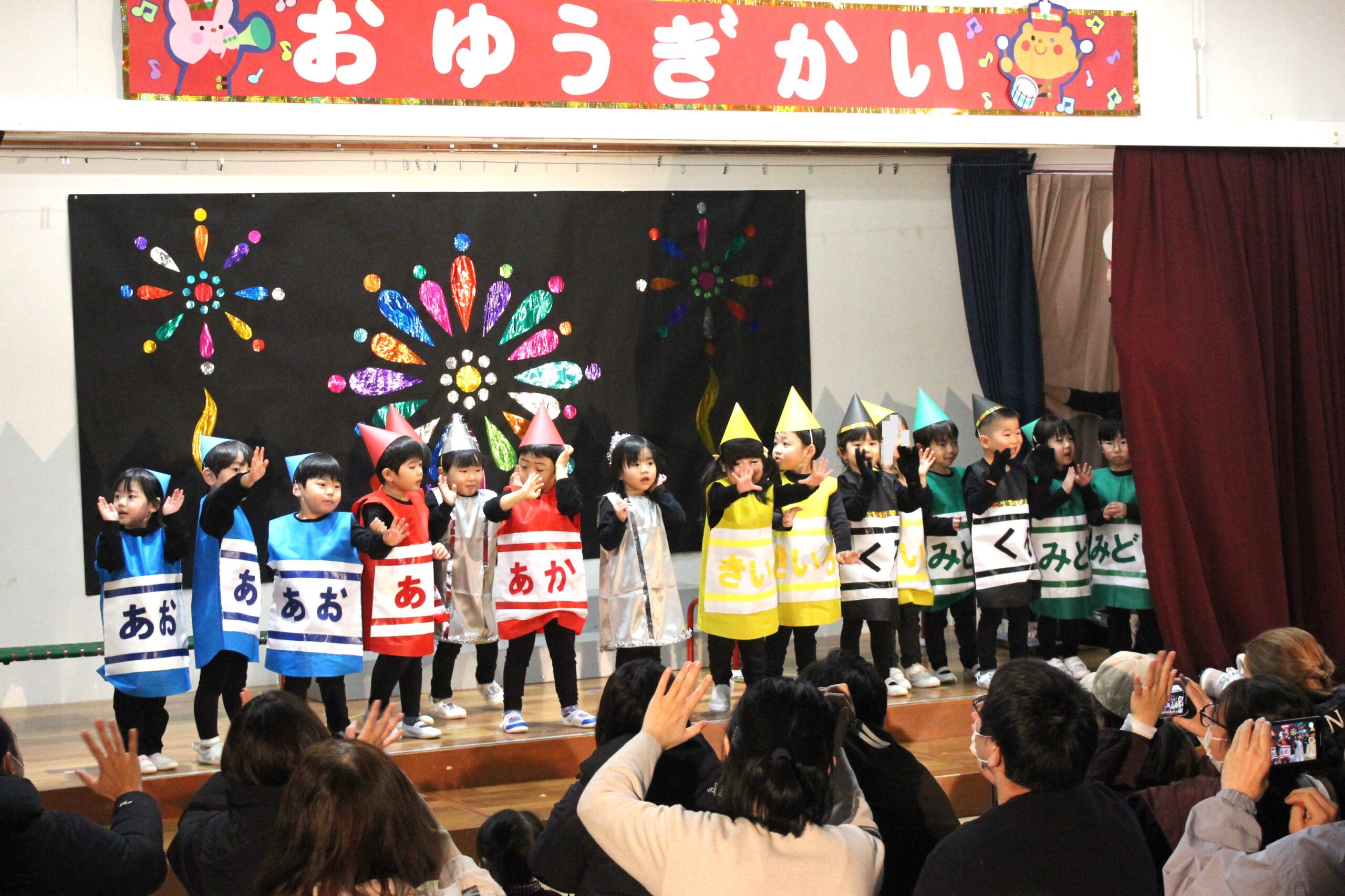 12月6日(土)第50回おゆうぎ会がありました。学年ごとに分かれて、お遊戯や劇、合唱、合奏を披露しました。今年初めて設定した保護者優先席でしたが、自分の子どもの発表を間近に見られると好評でした。緊張したけど、たくさんの拍手をもらってみんな満足げでした。