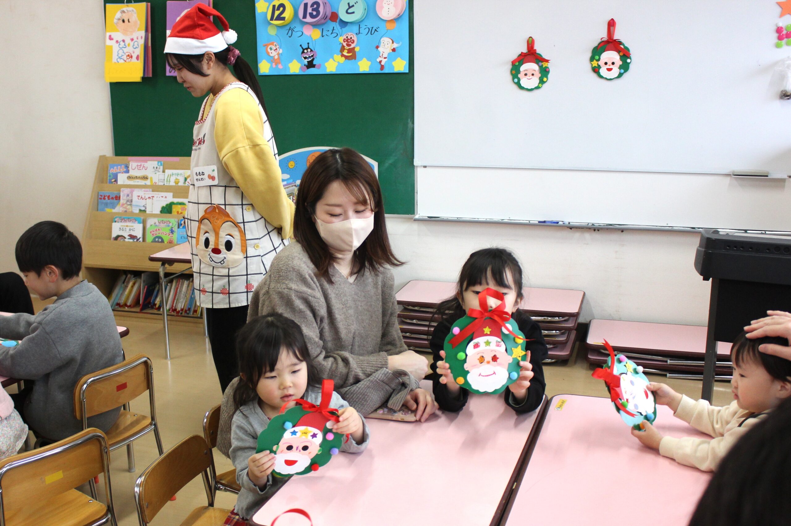 幼稚園の特色 幼稚園の紹介 年間の行事 預かり保育 未就園児教室 メニュー閉じる 幼稚園の特色 幼稚園の紹介 年間の行事 預かり保育 未就園児教室 園のブログ 12月のさくらんぼキッズ 2025.12.13 12月13日(土)第8回さくらんぼキッズ。今回は「クリスマス会」サンタさんの顔にシールを貼ってリースを作ったよ。サンタさんが来てプレゼントももらったよ。 一覧に戻る よくあるご質問 お問い合わせ 【所在地】〒981-0952 仙台市青葉区中山8丁目12-15【TEL】022-278-8085